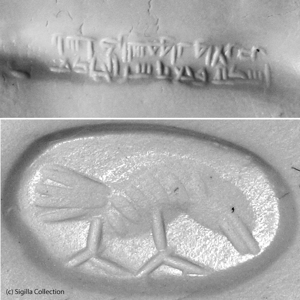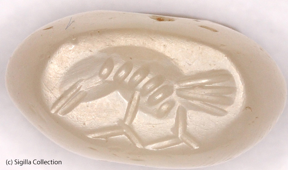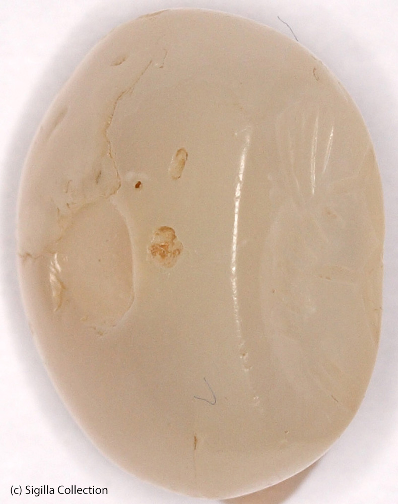 Nr 0045 Zitat1 Gyselen 30.S (Vogel) Zitat2 Göbl 036.a (Rabe) Beschreibung Rabe n.r. stehend, Kufi Inschrift auf dem Rücken Material Bergkristall Form Ellipsoid, undekoriert Maße 18 x 10 x 15mm Gewicht 3,9 g